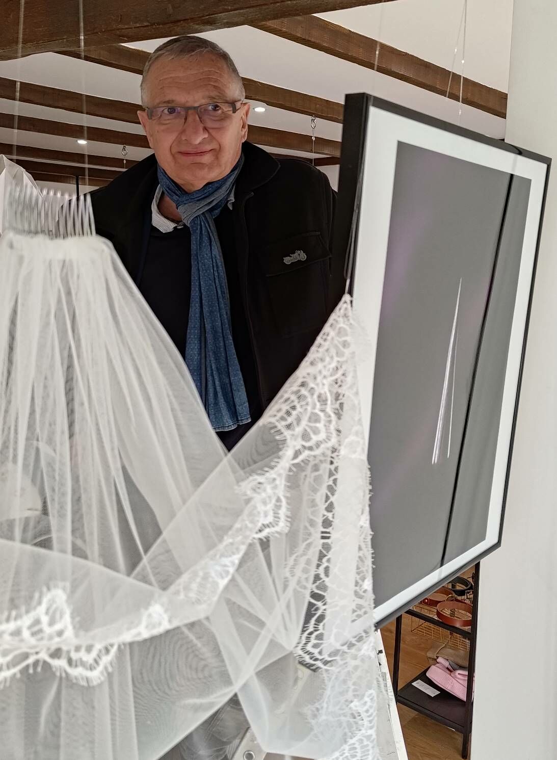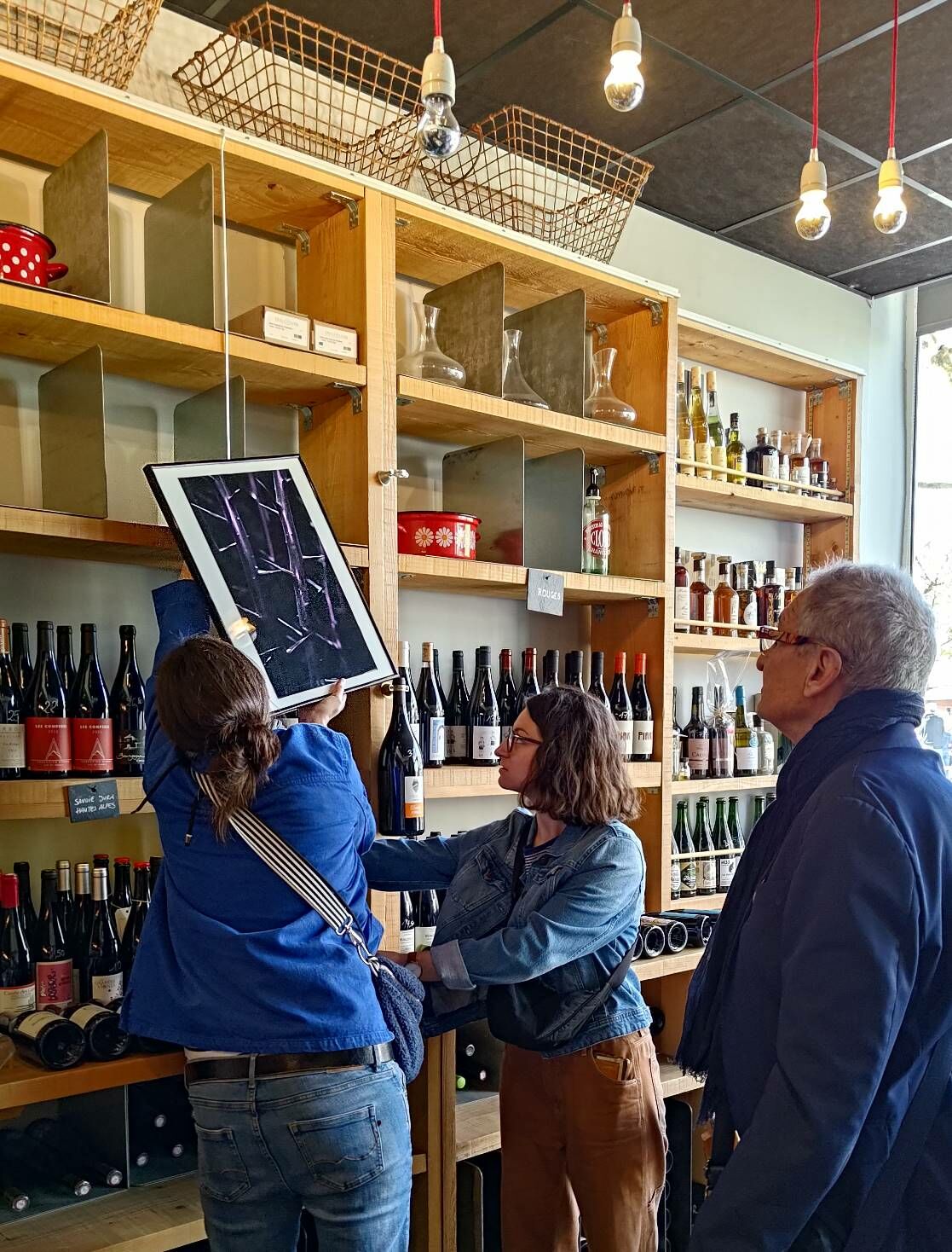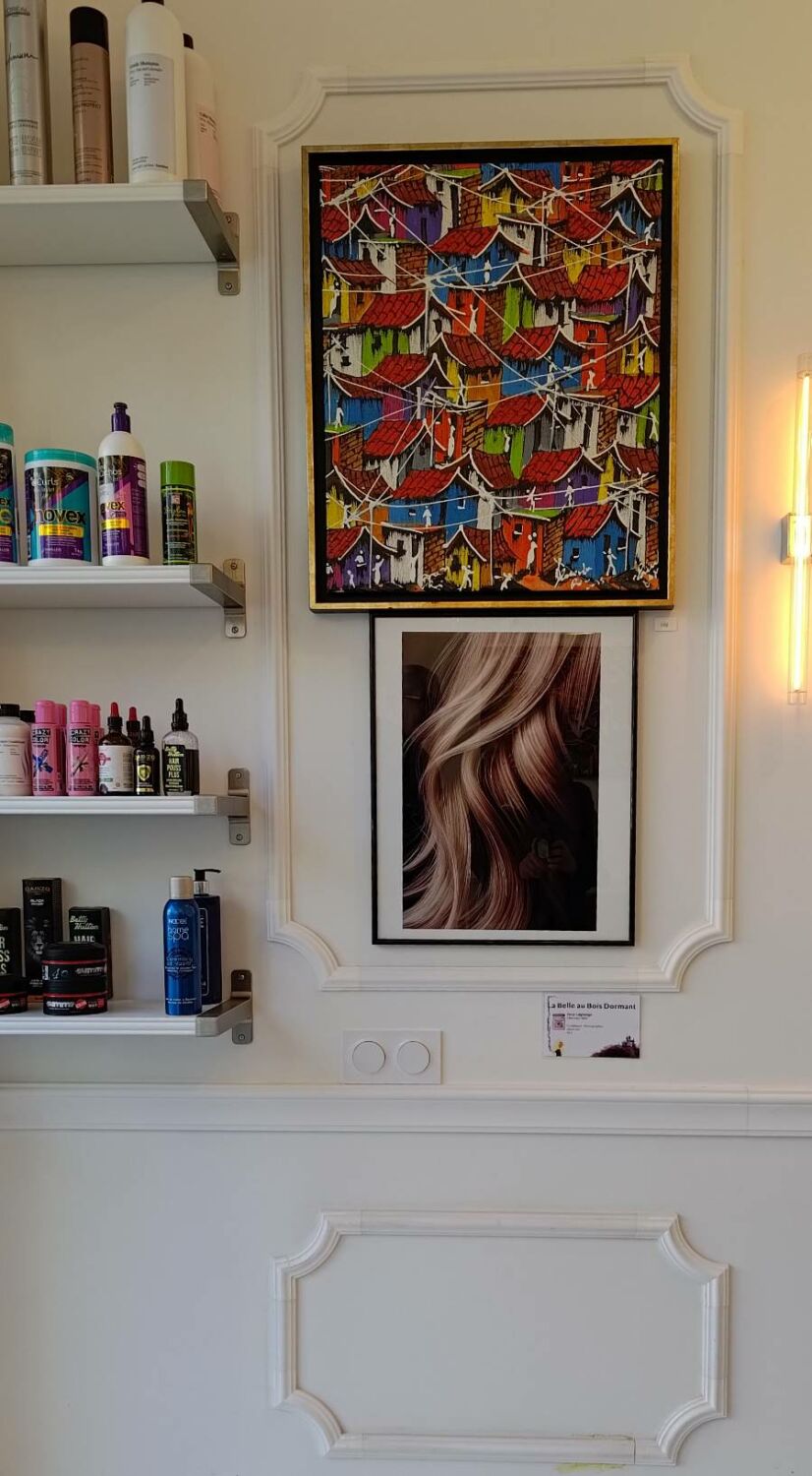 Le lendemain, samedi matin, le club photo est parti accrocher une partie des œuvres chez les commerçants ouverts le samedi matin. Notamment, le restaurant-herboristerie L’Herbe rouge, l’Atelier des Créateurs, le salon de coiffure Larousse, le fromager Maison Vimond, la mercerie Créa-Zeïna, le traiteur-charcutier Maison Denis chez Bibi. Merci à eux pour l’accueil chaleureux et d’avoir accepté de nous offrir une partie de leur mur pour exposer nos réalisations, tout au long du mois d’avril !
