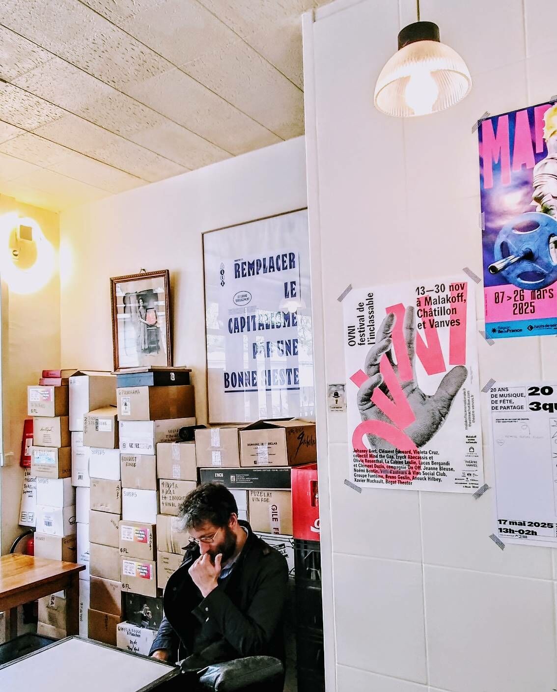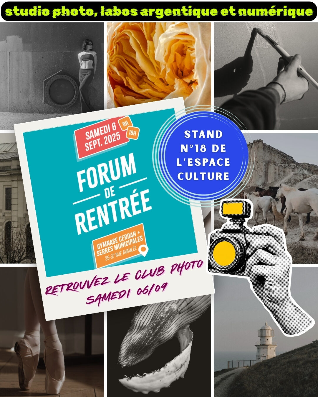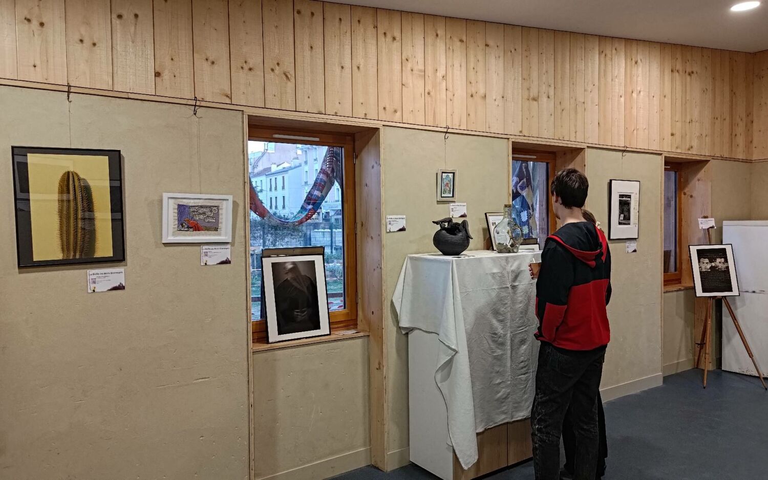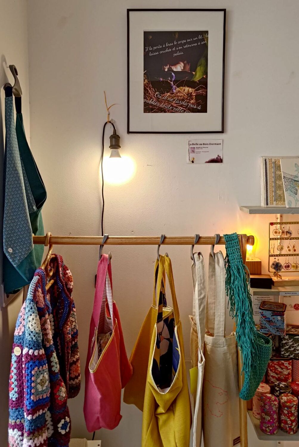 Le lendemain, samedi matin, le club photo est parti accrocher une partie des œuvres chez les commerçants ouverts le samedi matin. Notamment, le restaurant-herboristerie L’Herbe rouge, l’Atelier des Créateurs, le salon de coiffure Larousse, le fromager Maison Vimond, la mercerie Créa-Zeïna, le traiteur-charcutier Maison Denis chez Bibi. Merci à eux pour l’accueil chaleureux et d’avoir accepté de nous offrir une partie de leur mur pour exposer nos réalisations, tout au long du mois d’avril !